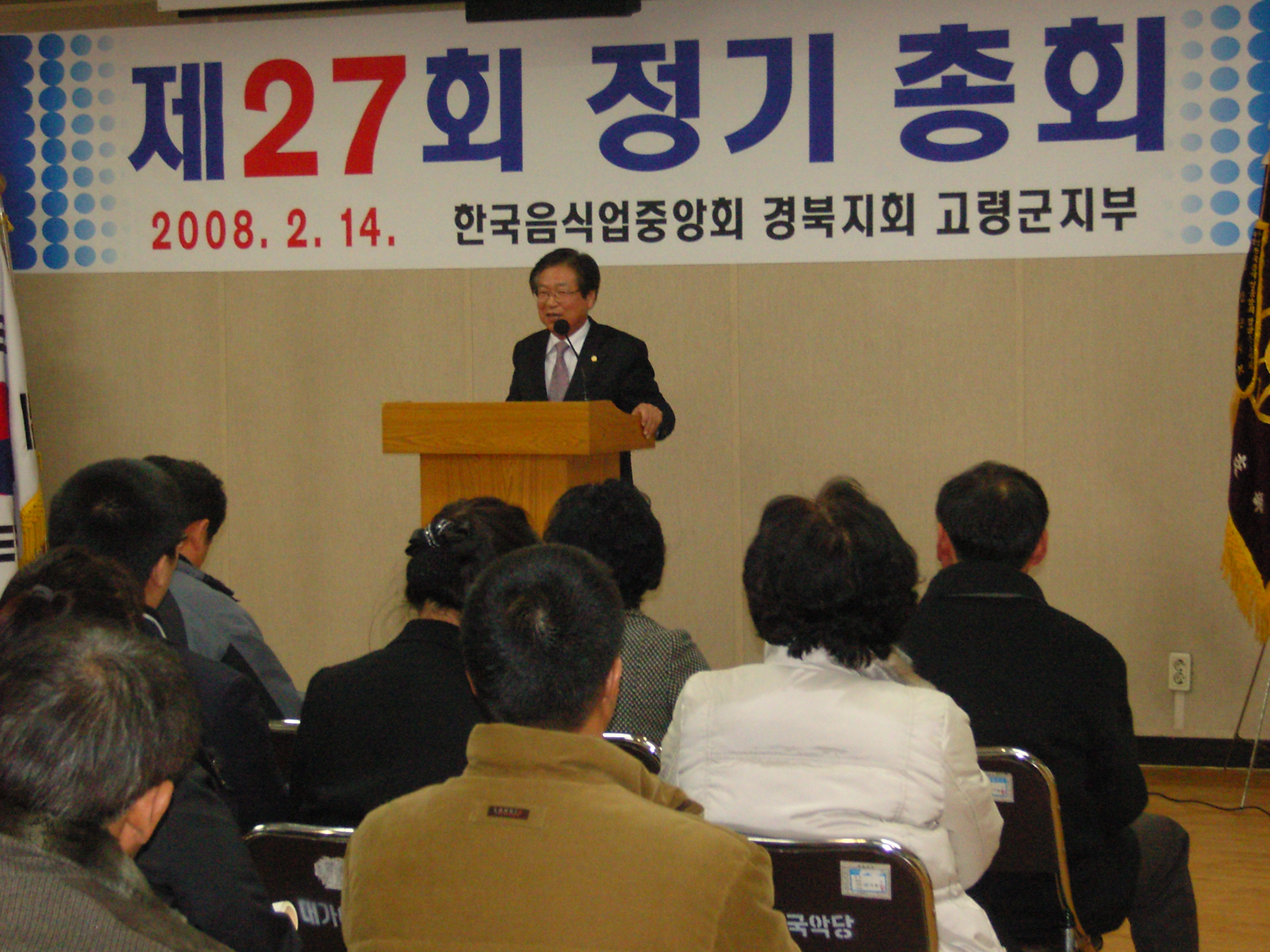 | 곽광섭 고령군의회 의장과 김재구 부의장은 한국음식업 고령지부 정기총회에 참석하였다. 일 시 : 2008. 2. 14(목), 15:00 장 소 : 국악연수실 |