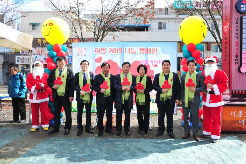 고령군의회는 12월 4일 고령군 중앙공영주차장에서 희망 나눔! 감사의 날!「기부합시DAY」행사에 참석하였다. 이날 행사는 경북사회복지공동모금회(회장 신현수)가 주최하고 고령군 지역사회보장협의체(위원장 김희수)와 고령군 나눔봉사단(단장 여민수, 명예단장 차영귀)이 주관한 행사로 한 해 동안 펼쳐진 다양한 봉사와 기부활동을 담은 동영상 상영을 시작으로 대가야읍 노인일자리에 참여하고 계신 어르신들이 지역의 특산물인 딸기와 수박을 본 따 만든 수세미 300개를 기부 하였고 이어서 나눔 문화 확산에 기여한 분들에게 감사패를 전달하고 1년 동안 100만원 이상의 성금을 기부한 분들에게 「나눔리더」 인증패가 전달되었다. 더불어 관내 어린이집 원생 60여명이 참석하여 각 어린이집에서 모금한 280여만원을 전달하는 등 관내 기업, 사회단체 등 각계각층에서 나눔을 실천하는 성금이 줄을 이었다.