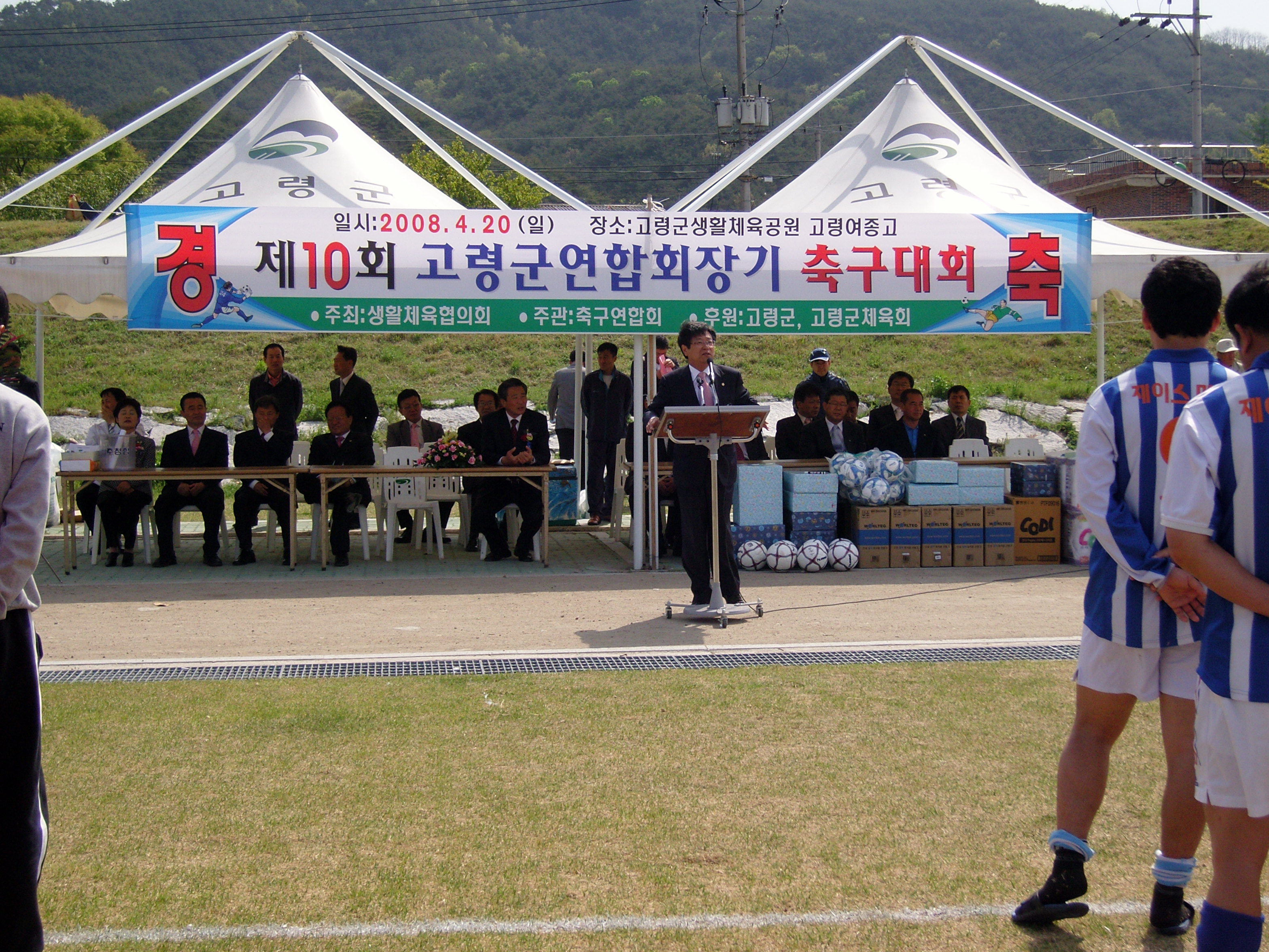 | 곽광섭 고령군의회 의장 및 의원들은 제10회 고령군 연합회장기 축구대회에 참석하였다. 일 시 : 2008. 4. 20(일) 장 소 : 고령군생활체육공원, 고령여종고 |